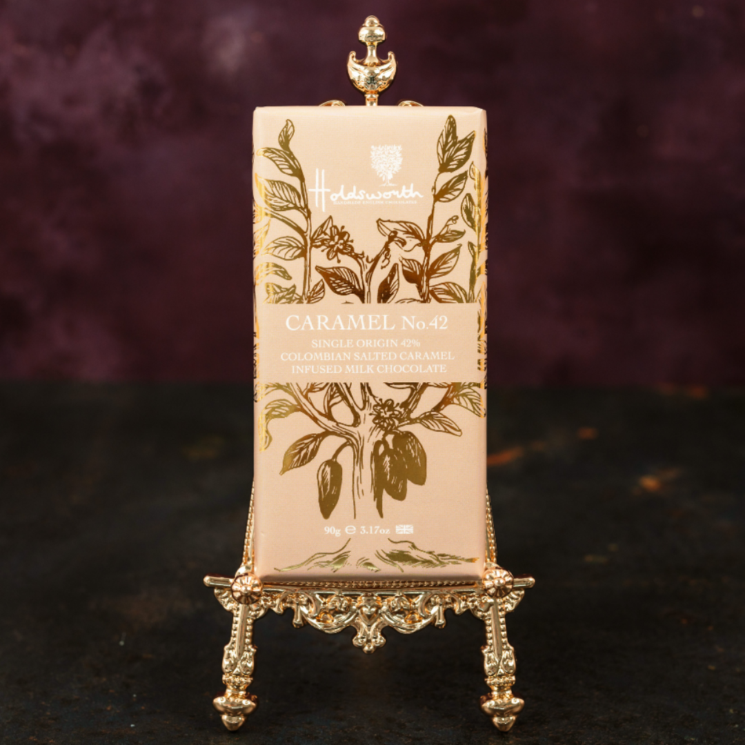 • Caramel No.42 - Single origin 42% Colombian salted caramel infused milk chocolate bar.
